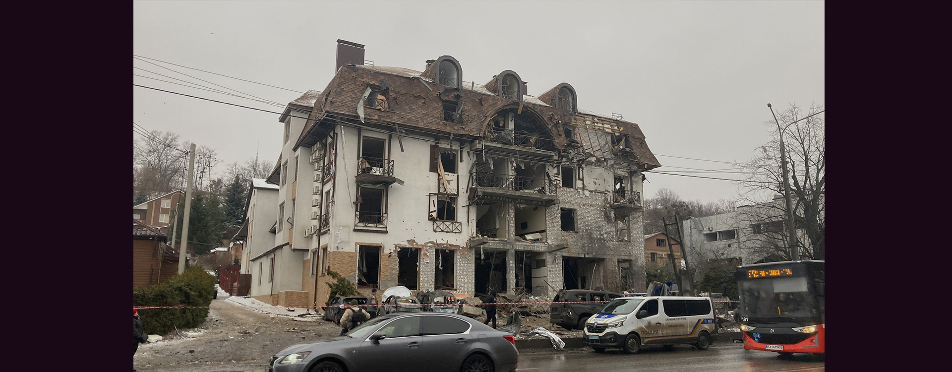 "Es gab keine militärischen Söldner, das Militär war nicht hier. Dies ist eine zivile Einrichtung, eine zivile Infrastruktur. Wir haben immer unsere Freunde, Gäste, die in Charkiw waren, ausländische Delegationen hier untergebracht", sagte Igor Terechow, der Bürgermeister der Stadt. Ein Einschlag war im Gebäude des Hotelkomplexes, eine weitere Rakete schlug in der Nähe des Hoteleingangs ein.
