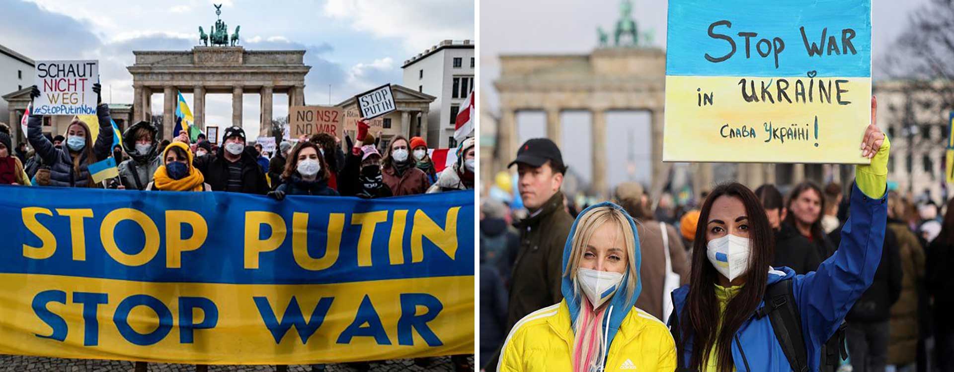 The protest comes as Russia's attack on Ukraine entered its fourth day, triggering three sanctions package from Germany and its Western allies and pushing Berlin to shift its decades-long policy of not exporting arms to conflict zones.