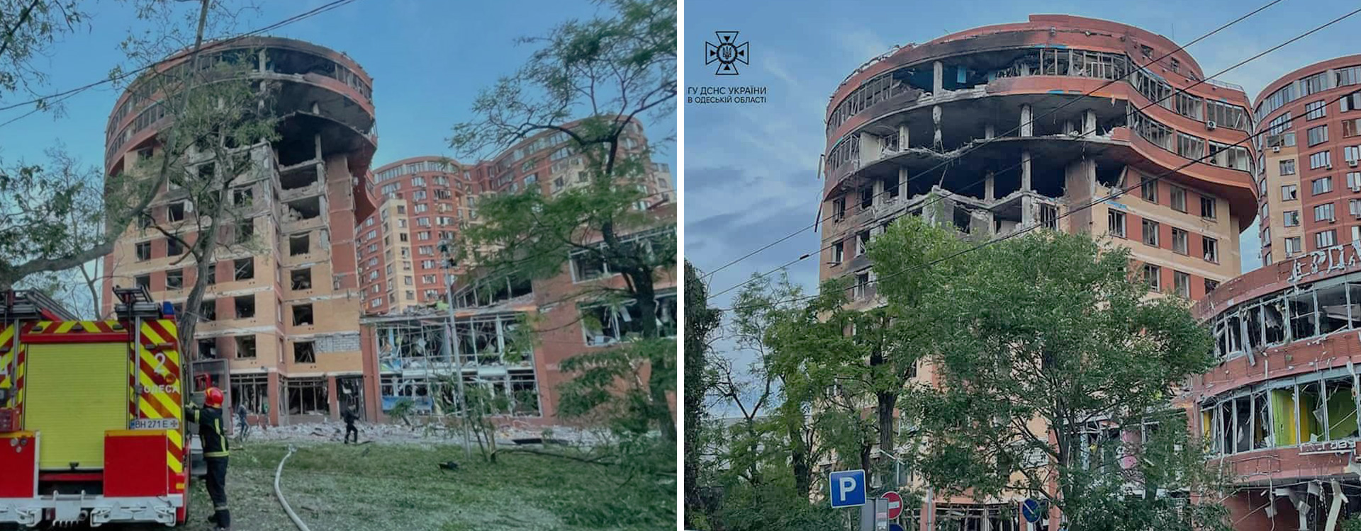 Russian troops launched a missile strike in Odessa. The attack damaged residential buildings, warehouses. A business centre building, a restaurant and several shops were damaged. Three people were killed and over a dozen injured.