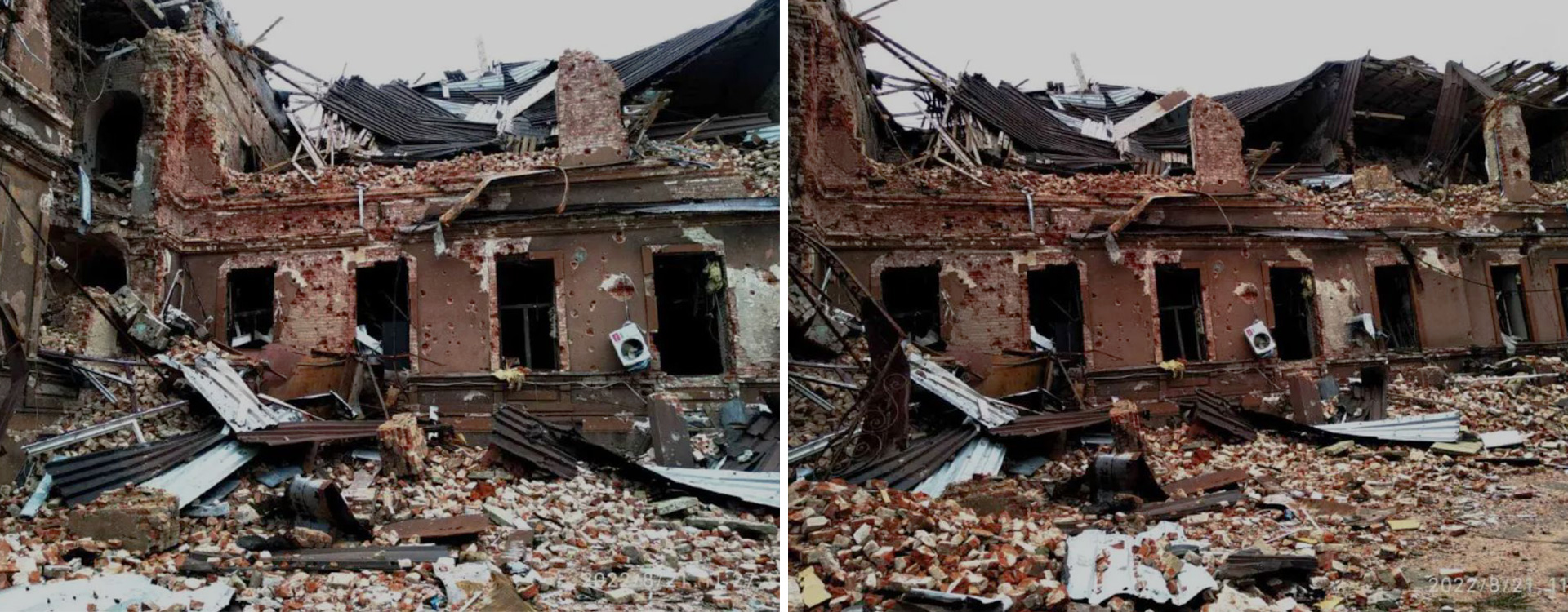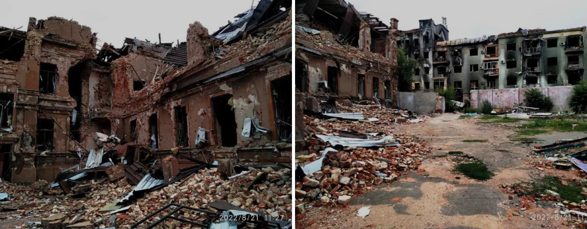 Photos of buildings and their destruction before and after the start of the war.
