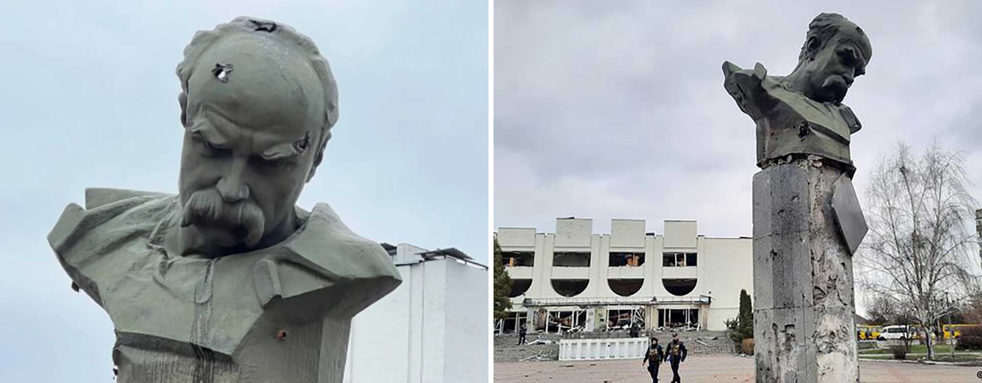 Photos de bâtiments et de leur destruction avant et après le début de la guerre.