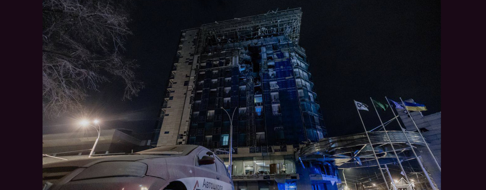 L'un des plus grands et des plus célèbres hôtels de Kharkiv, le Kharkiv Palace, a été la cible de tirs de roquettes russes. Selon le bureau du procureur régional de Kharkiv, les tirs russes ont fait au moins 26 blessés, dont deux mineurs.