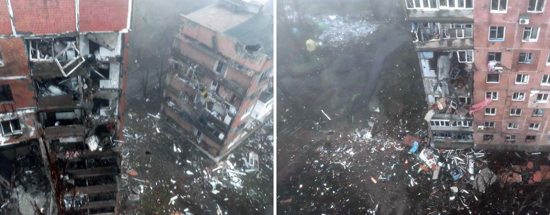 Photos de bâtiments et de leur destruction avant et après le début de la guerre.