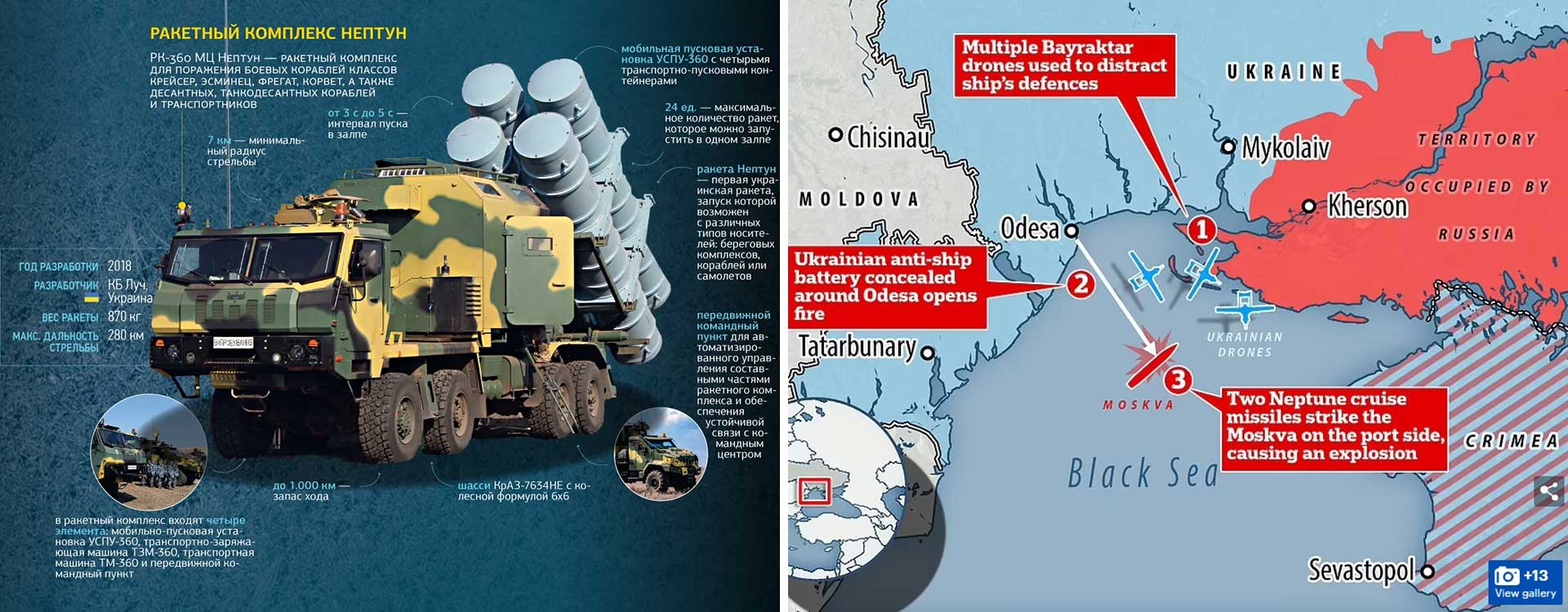 Lors de l'invasion russe de l'Ukraine le 24 février 2022, le navire a participé à la capture de l'île des Serpents. C'est dans l'adresse du croiseur "Moscou" que la phrase "Navire de guerre russe, allez à ..." a été entendue.