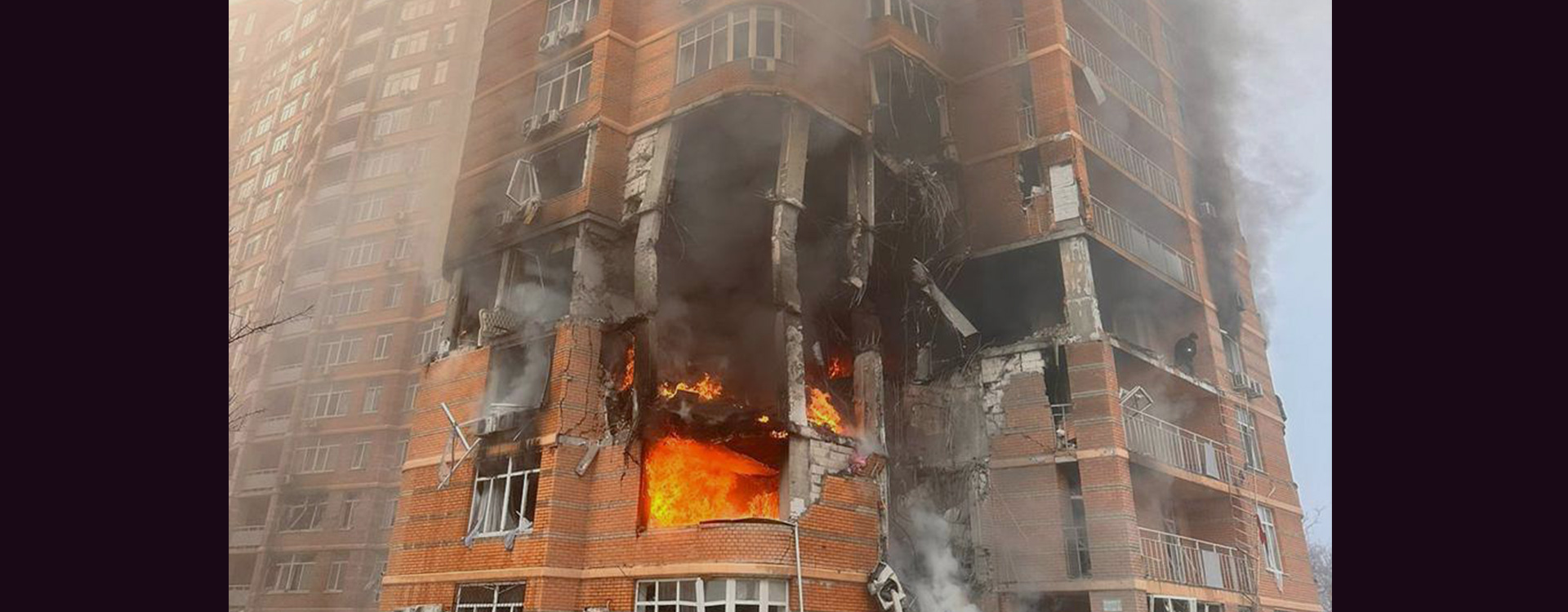 Par la suite, les réseaux sociaux ont diffusé des informations sur l'incendie d'un immeuble d'habitation, résultant d'une frappe ennemie.
