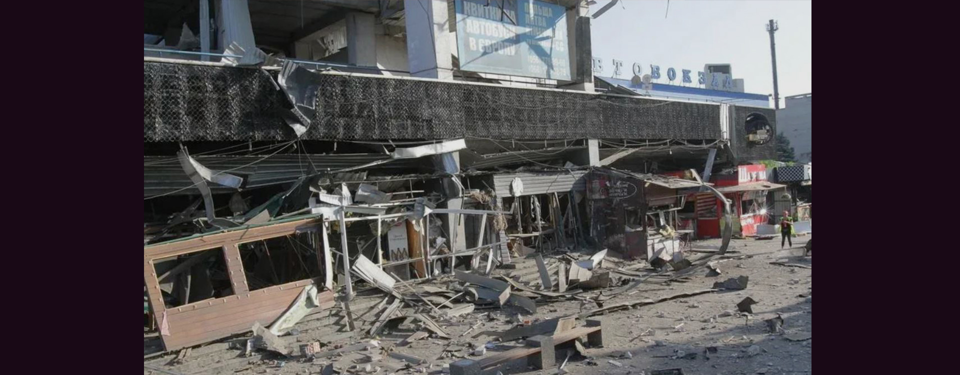 Рядом со зданием автовокзала находились киоски, кафе, а также расположен рынок. В результате удара прилегающая к вокзалу территория получила сильные повреждения: часть киосков была полностью уничтожена.