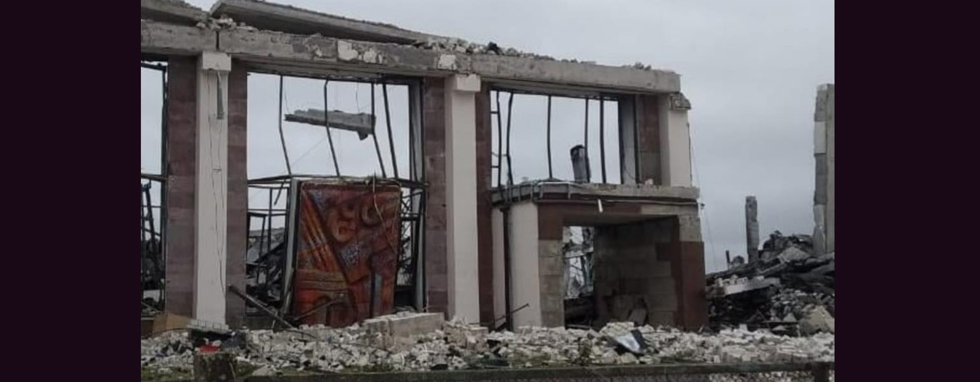 Під час атак російські війська знищили будівлю летовища, а разом із нею - шість із восьми унікальних мозаїчних панно. Разом зі спорудою зруйновані й керамічні панно та гіпсові рельєфи всередині приміщення, створені іншими чернігівськими художниками та скульпторами. Наразі неможливо демонтувати вцілілі частини цих пам'яток мистецтва.