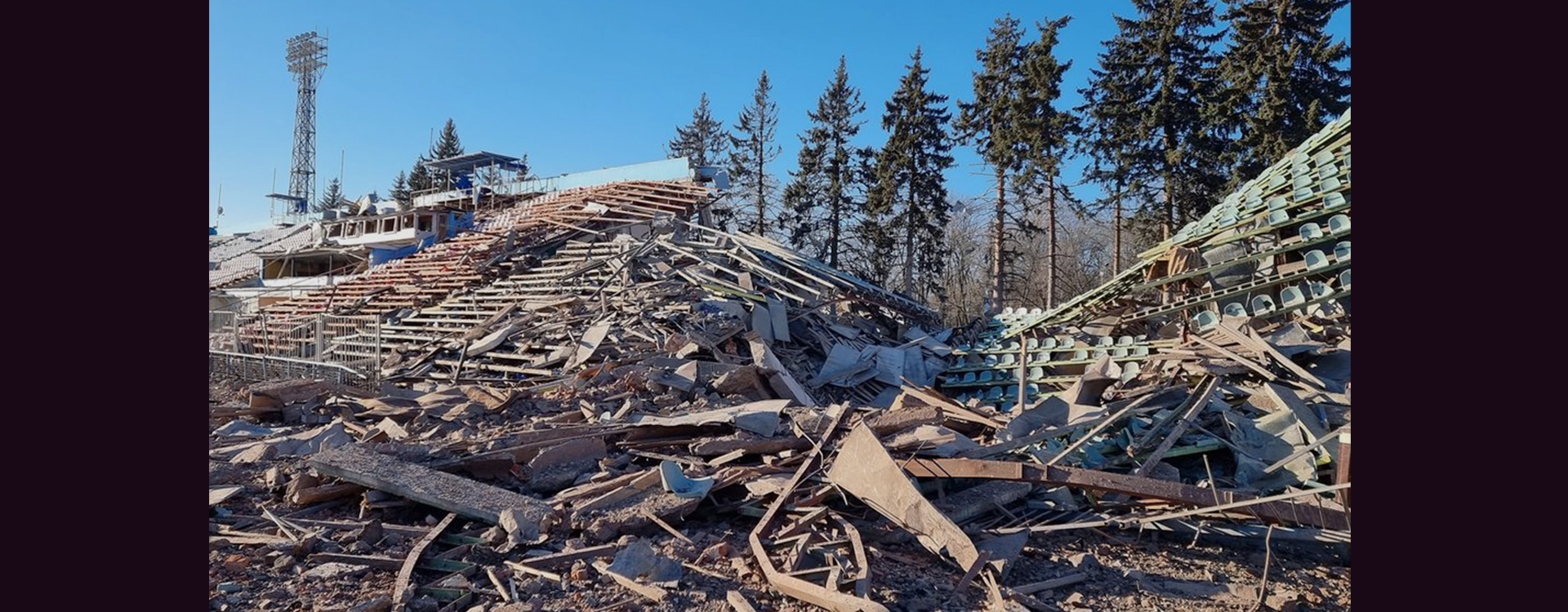 5 березня 2022 року під час повномасштабної війни Росії проти України та облоги Чернігова східна трибуна була зруйнована внаслідок артилерійського обстрілу. А 11 березня ворожа авіація пошкодила й поле. Стадіон, де впродовж десятиліть тренувалися цілі покоління українців, де зростали майбутні чемпіони, де здійснювалися дитячі мрії, російські окупанти розбили 500-кілограмовими фугасними бомбами.