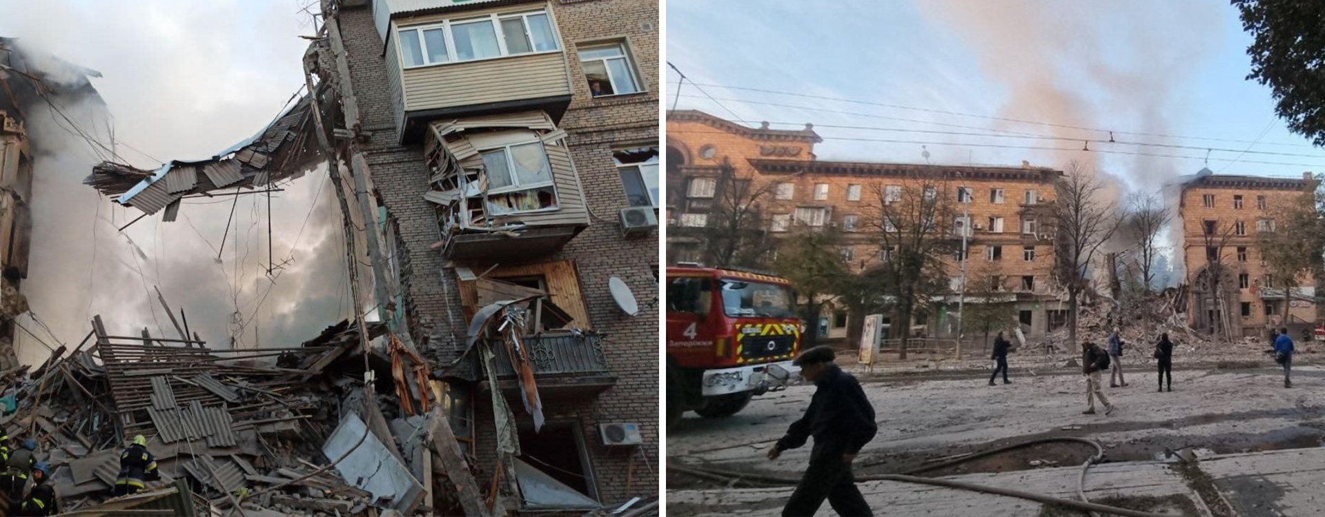 Росіяни в ніч на 6 жовтня завдали 7 ракетних ударів по багатоповерхівках у центрі Запоріжжя, троє людей загинули і щонайменше 12 осіб постраждали. Попри ризик повторного обстрілу країною-терористом, під завалами рятувальники дістають постраждалих людей, працюють усі необхідні служби.