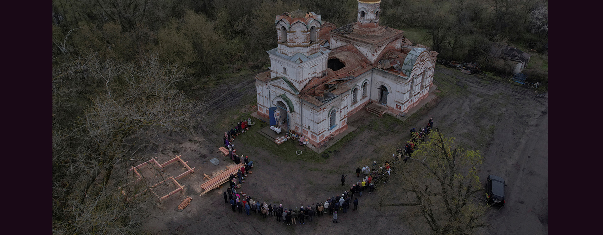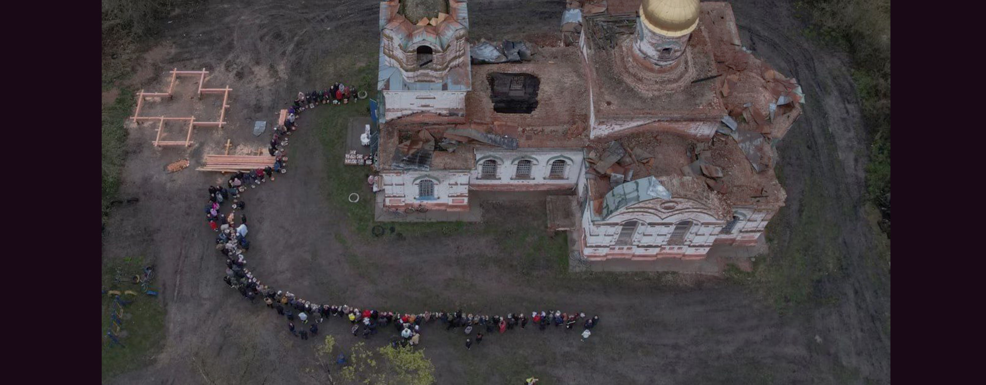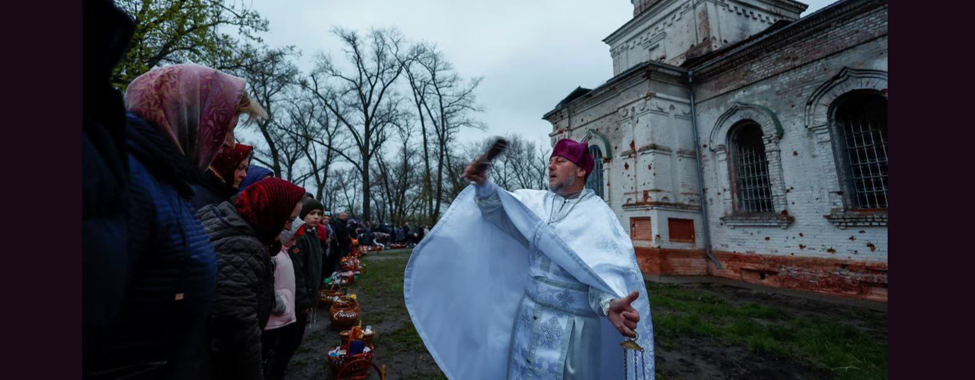 Жителі села Лукашівка Чернігівської області прийшли освячувати паски на свято Христового Воскресіння до Вознесенської церкви, яка пережила Другу світову, але не пережила повномасштабне вторгнення Росії в Україну. Під час окупації населеного пункту російські військові використовували будівлю як штаб і склад зброї та палива. Цей храм, який є пам'яткою архітектури, був знищений наприкінці березня 2022 року.